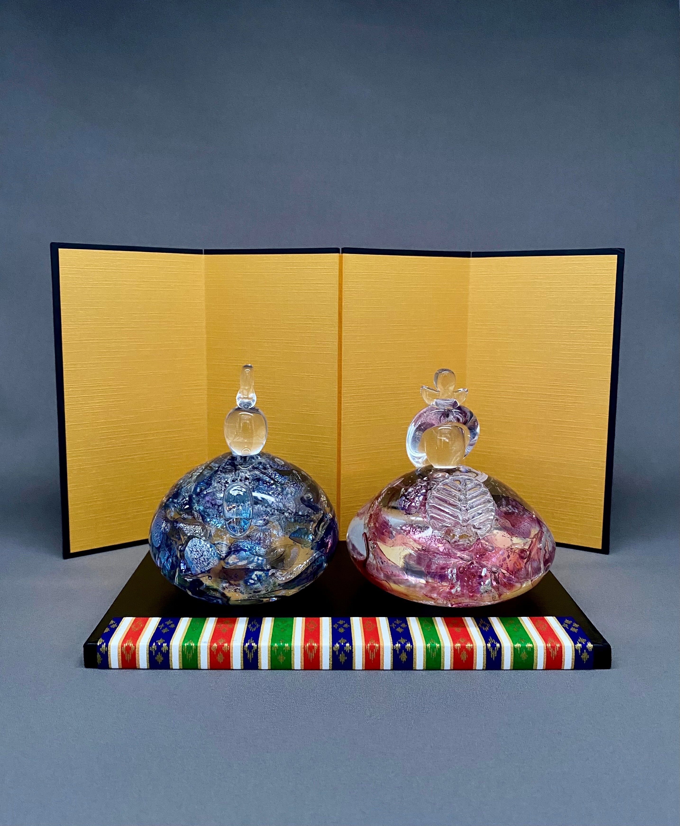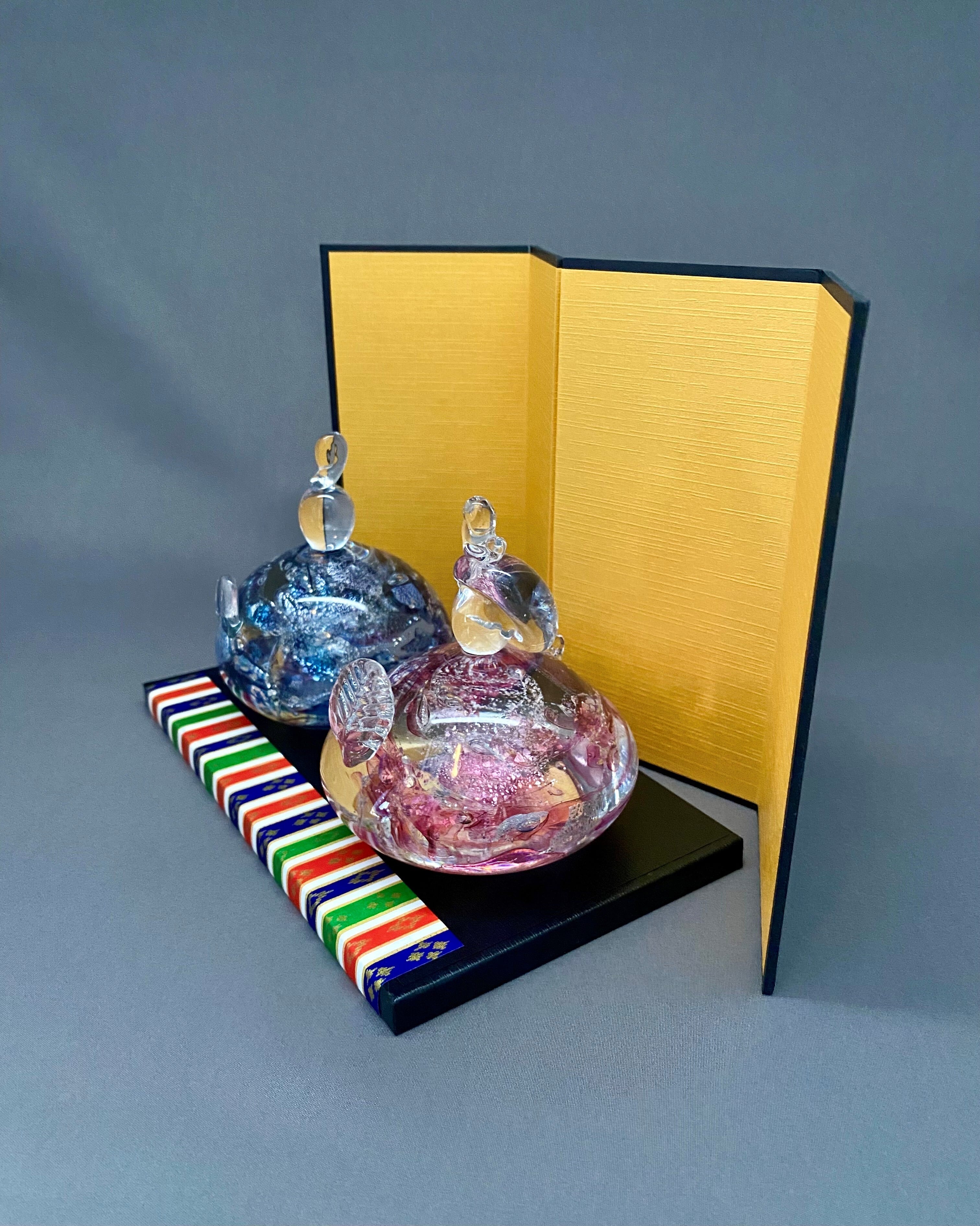 【硝子雛 福(ふく)】[一点もの/店頭販売品 *金屏風 台座セット]
