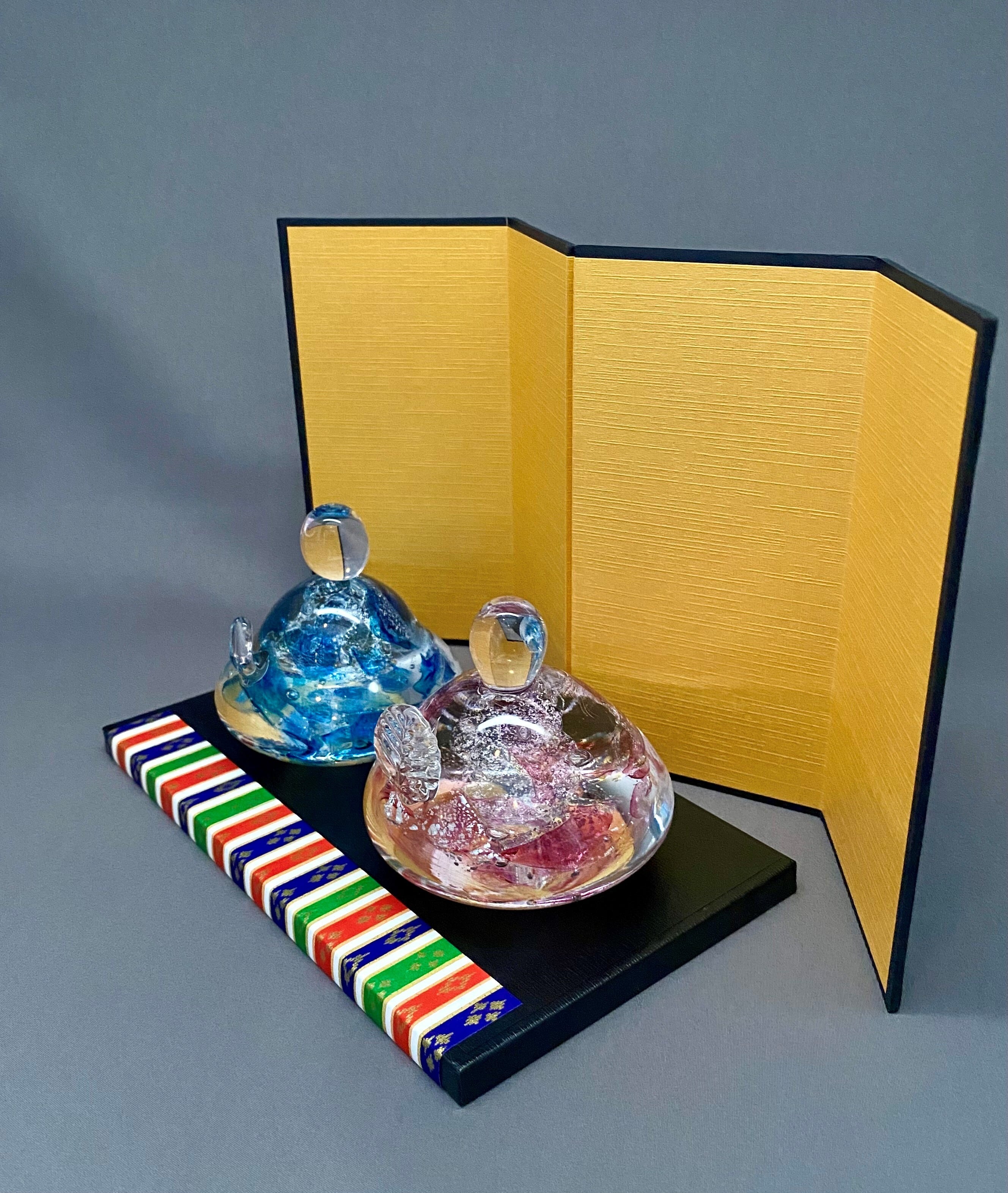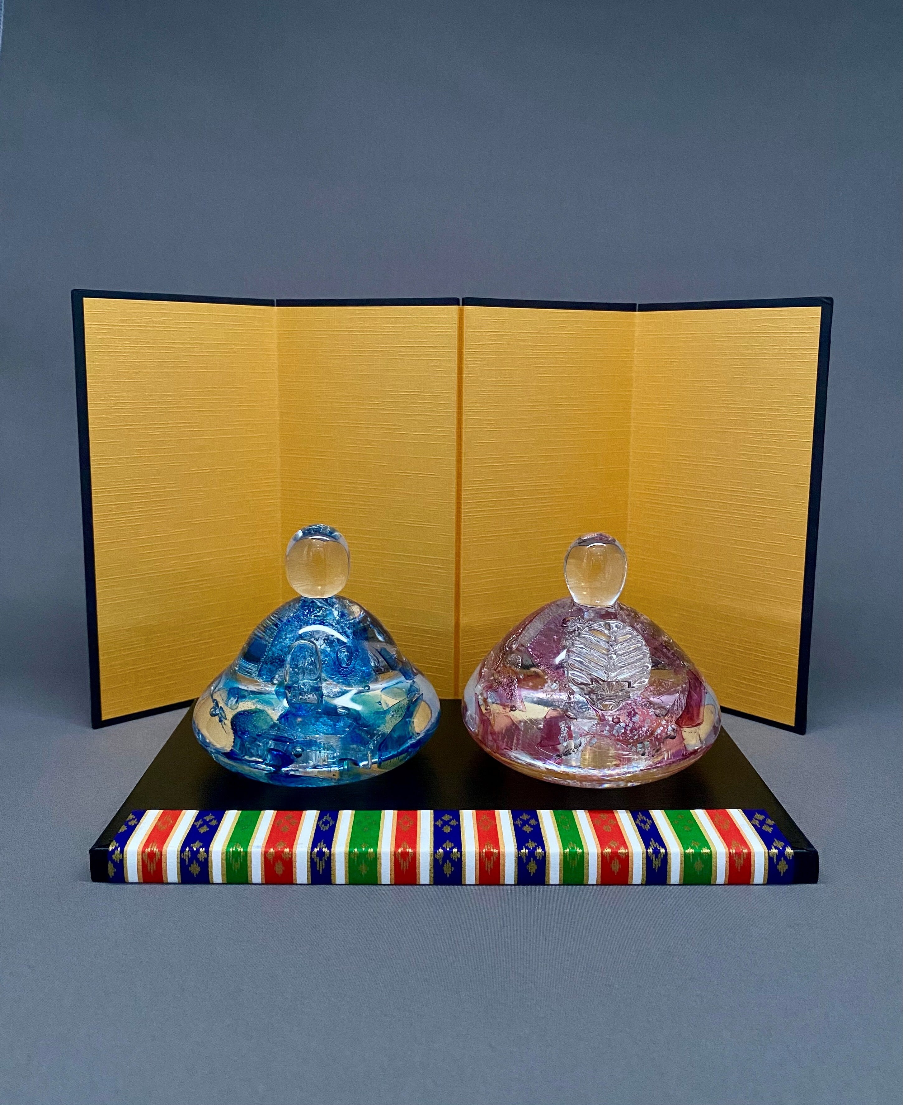 【硝子雛 童子(どうじ)】[一点もの/店頭販売品 *金屏風 台座セット]