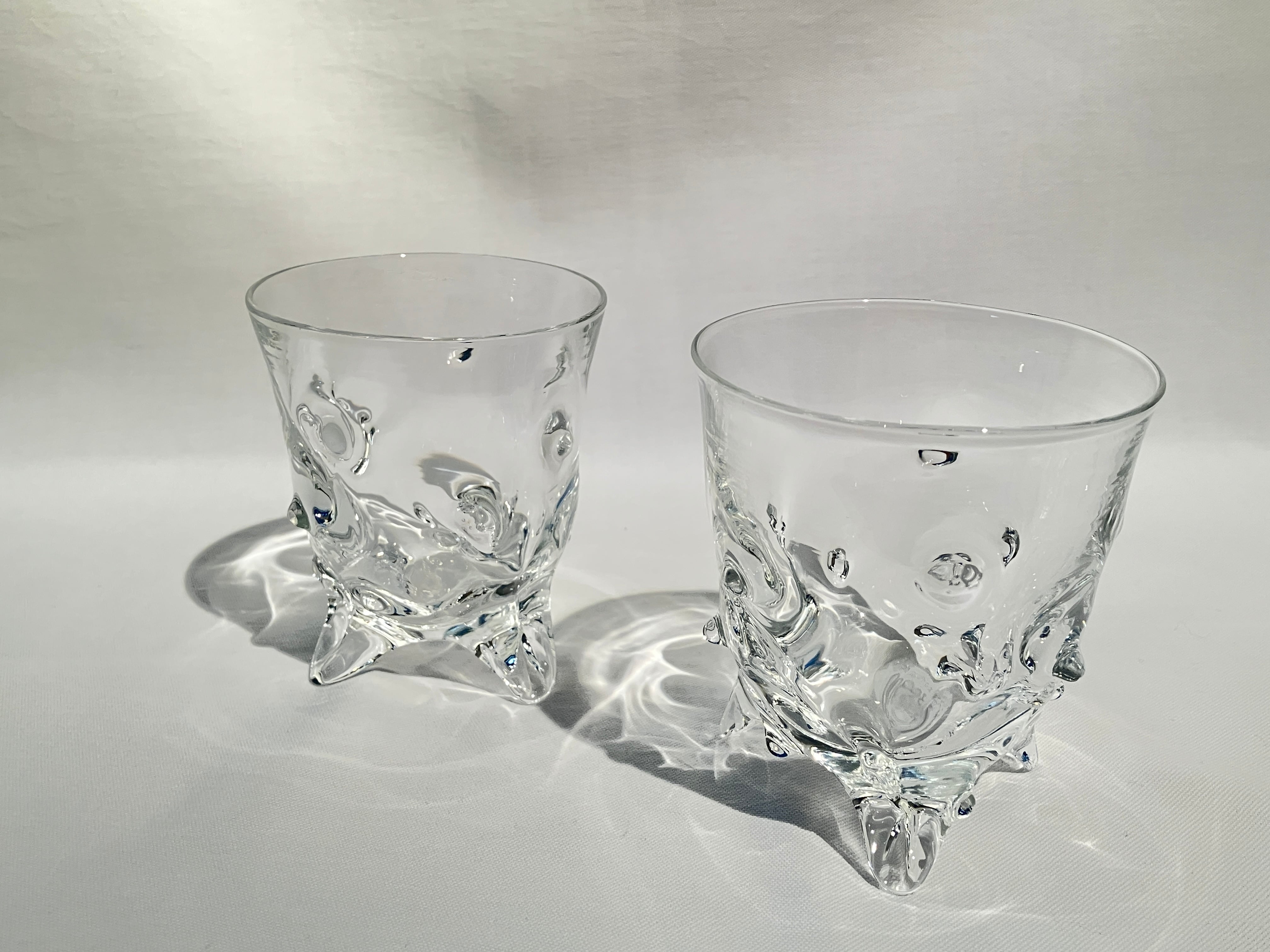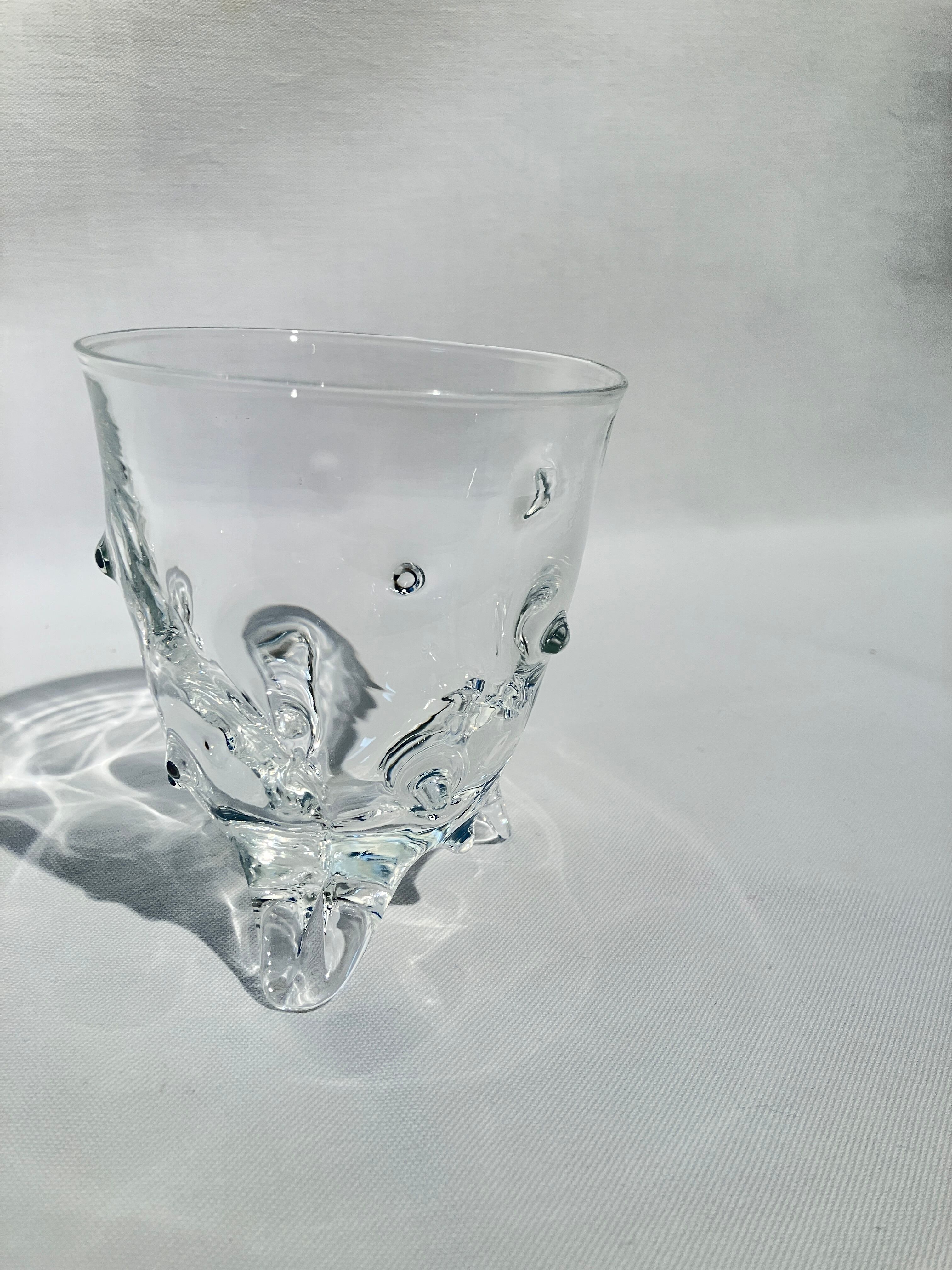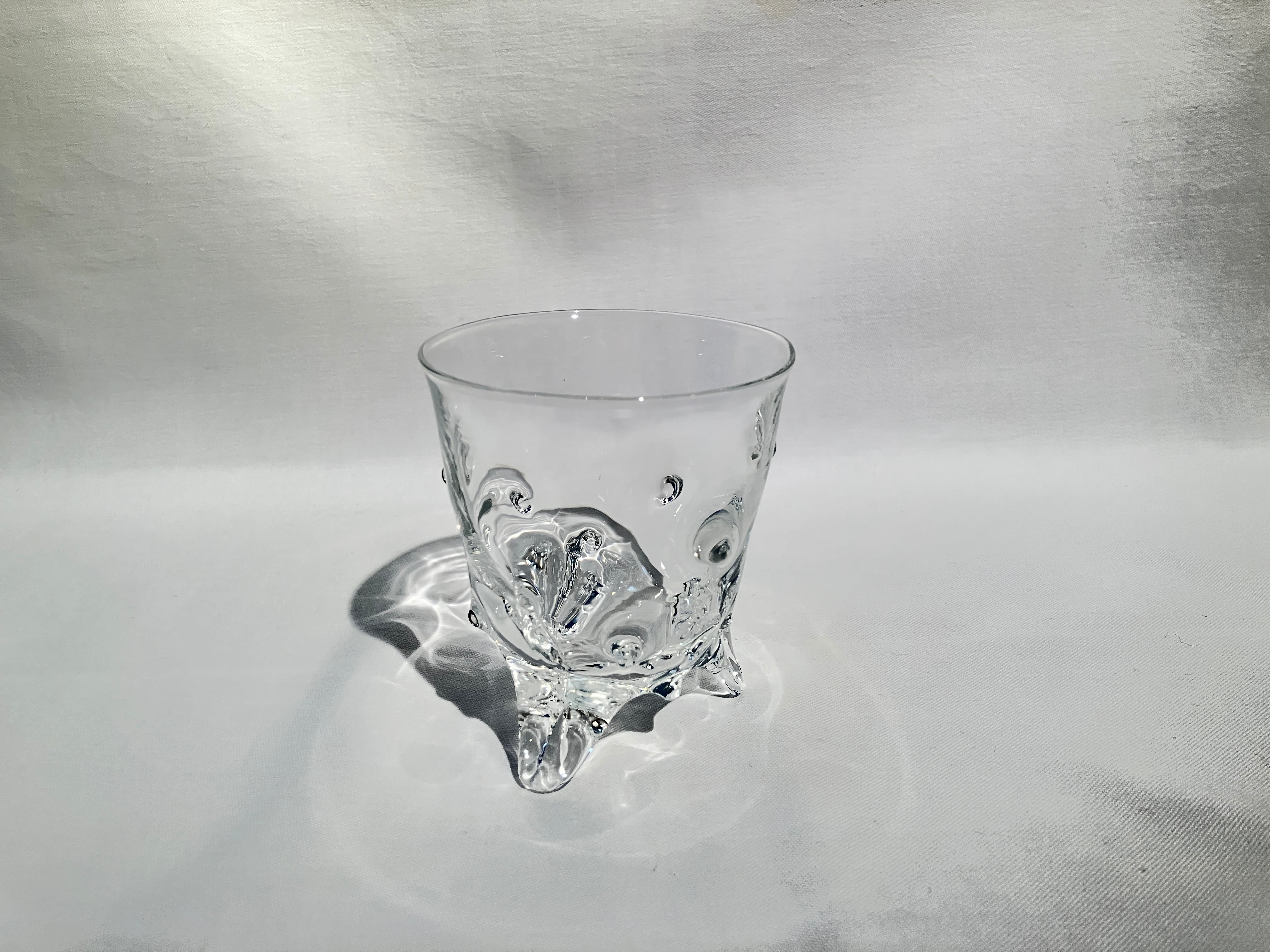 足つきグラスは、クラフト感溢れる三つ足のデザインが特徴の素敵なグラスです。ビールやミネラルウォーターを注げば、光の屈折によって飲み物が美しく輝き、普段の食卓に華やぎを与えてくれます。